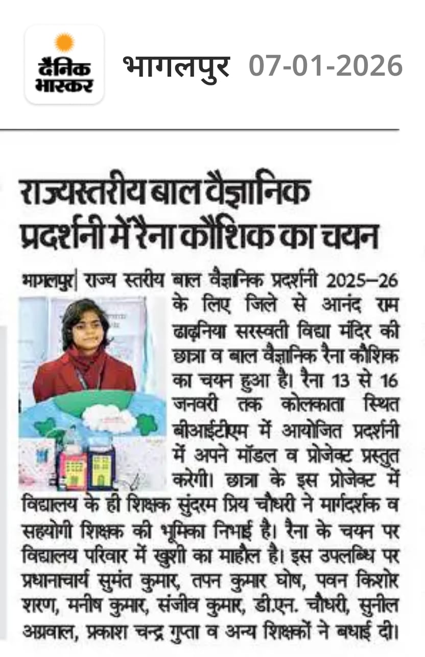 Anandram Dhandhaniya Sarswati Vidya Mandir will in all respects promote talent and act as a platform to raise successful careers.