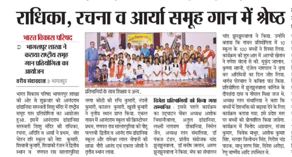 Anandram Dhandhaniya Sarswati Vidya Mandir, promotes talent and act as a platform to raise successful careers.